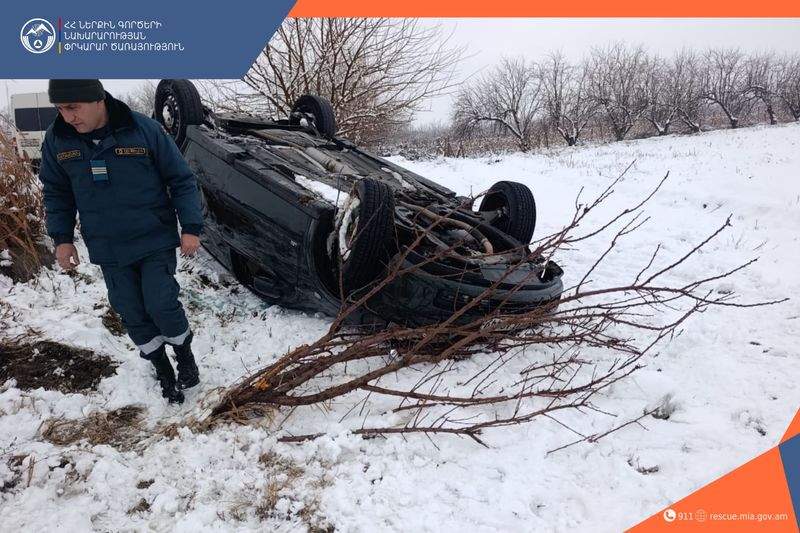 Փետրվարի 11-ին, ժամը 10:12-ին Արարատի մարզային փրկարարական վարչության ճգնաժամային կառավարման կենտրոն ահազանգ է ստացվել, որ Երևան-Երասխ ավտոճանապարհին՝ Արարատ բնակավայրի հատվածում, տեղի է ունեցել ՃՏՊ՝ ավտոմեքենան դուրս է եկել ճանապարհի երթևեկելի հատվածից և շրջվել․ անհրաժեշտ է փրկարարների օգնությունը։