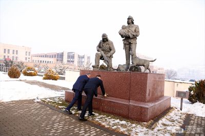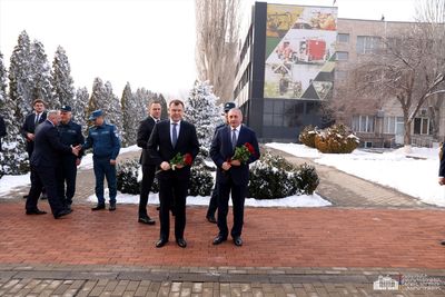 Արամ Ղազարյանն ու Վյաչեսլավ Բուտկոն նաև ծաղիկներ են խոնարհել Փրկության նվիրյալների պատվո հուշարձանին։