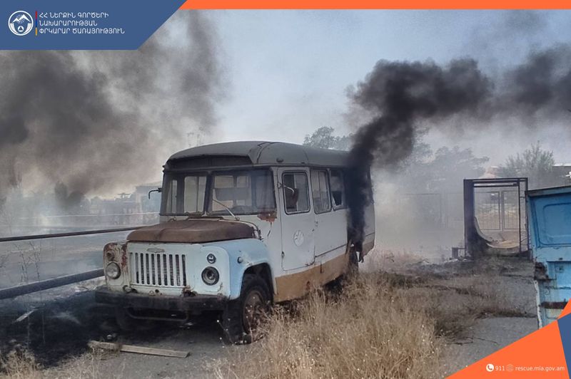Հրդեհը մեկուսացվել է ժամը 14։51-ին, մարվել՝ 15։45-ին։ Այրվել են 4 ավտոբուս, 2 բեռնատար և 2000 քմ խոտածածկույթ։