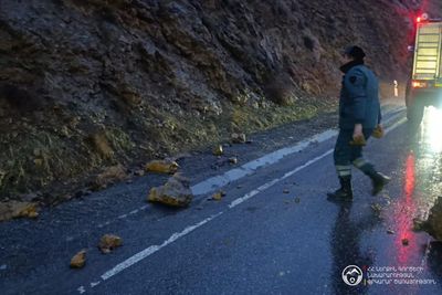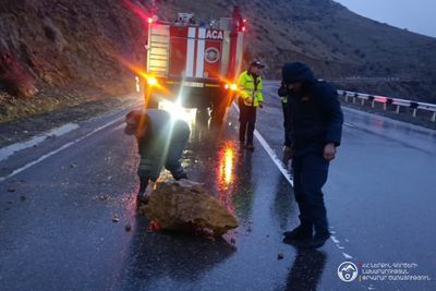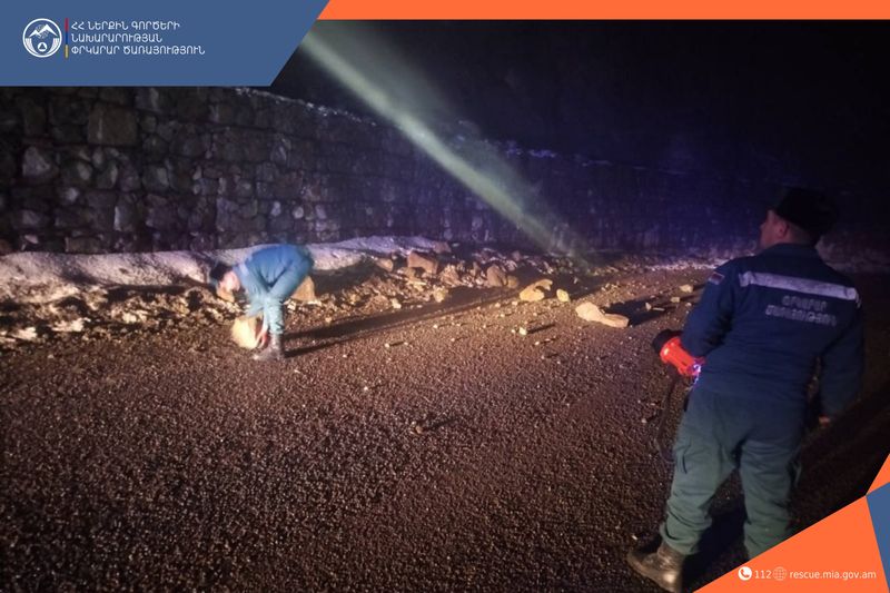 Փրկարարները ճանապարհի երթևեկելի հատվածից հեռացրել են թափված քարերը․ երթևեկությունը վերականգնվել է։