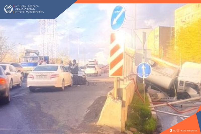 Պարզվել է, որ բախվել են «Howo» մակնիշի բեռնատարը, «Kia», «Hyundai» և «Toyota» մակնիշների ավտոմեքենաները, այնուհետև «Howo» մակնիշի բեռնատարը բախվել է արգելապատնեշին և կողաշրջվել, ինչի արդյունքում տեղի է ունեցել վառելիքի արտահոսք: