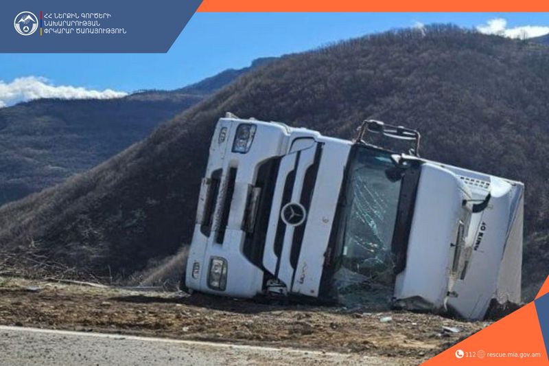 Բեռնատարը դուրս է եկել ճանապարհի երթևեկելի հատվածից և կողաշրջվել