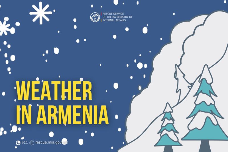South-west wind speed is 2-5 m/s, on February 13-17 in separate regions the wind speed may reach up to 13-16 m/s. In the daytime of February 11 in separate regions, at night and in the morning of 13-16 of Shirak and Ararat Valley, in the foothills of Kotayk and Aragatsotn provinces, including Yerevan fog is predicted. At the night of February 13 and in the morning, black ice is predicted on the roads of the Republic.