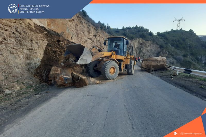 16-го апреля в 18:47 в Вайоцдзорский региональный центр оперативного управления был получен звонок о том, что на дороге, ведущей из автодороги М-2 в сторону города Джермук произошел камнепад.