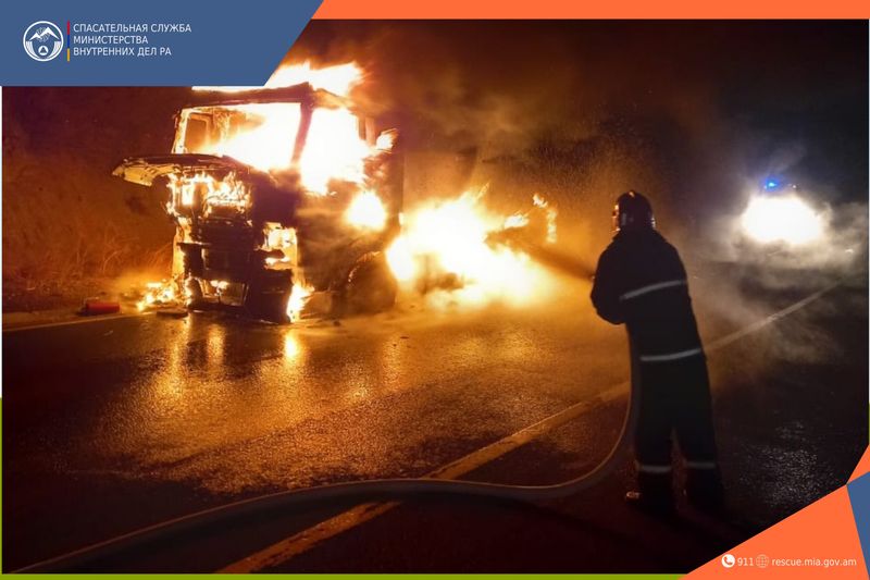 11-го декабря в 19:43 в Лорийский региональный центр кризисного управления был получен звонок о том, что на поворотах Спитака горит грузовой автомобиль.