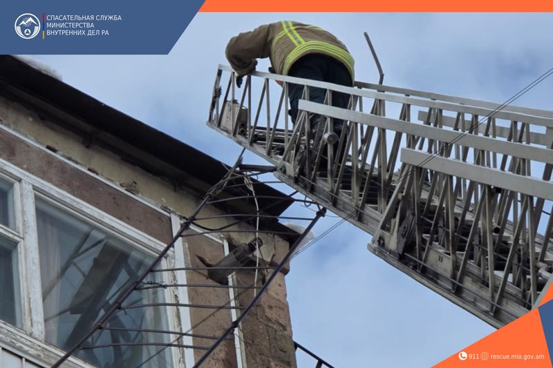 3-го февраля в 10:24 в Национальный центр кризисного управления и Котайкский региональный центр кризисного управления были получены звонки о том, что по ряду адресов квартала Микрошрджан города Раздан с крыш зданий ослабли и свисают железные перила.