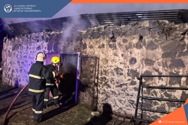 Հրդեհը մեկուսացվել է ժամը 03։18-ին, մարվել՝ 05։00-ին։ Այրվել են անասնագոմի մոտ 40 քմ հատվածը և տանիքը՝ 70 քմ։