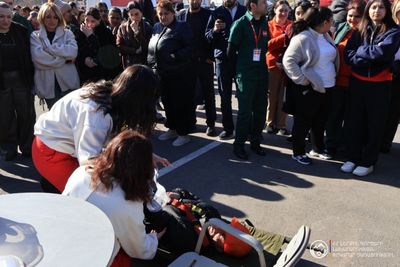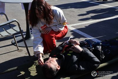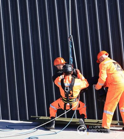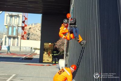 Ուսումնավարժության առանձնահատուկ տարրը փրկարարների գործողություններն էին բարձրահարկ ծխապատ գոտում. տանիքում հայտնաբերված պայմանական տուժածները դուրս բերվեցին ավտոսանդուղքի և պարանների միջոցով, որից հետո բժշկական օղակն անմիջապես ցուցաբերեց առաջին օգնություն։