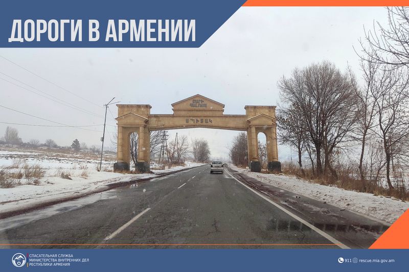 Автодорога Гюмри-Бавра (гололедица) закрыта для всех видов транспортных средств, а Варденяцский перевал, автодороги от Джермука в Сюникский регион и Сюникского региона закрыты для транспортных средств с прицепами.