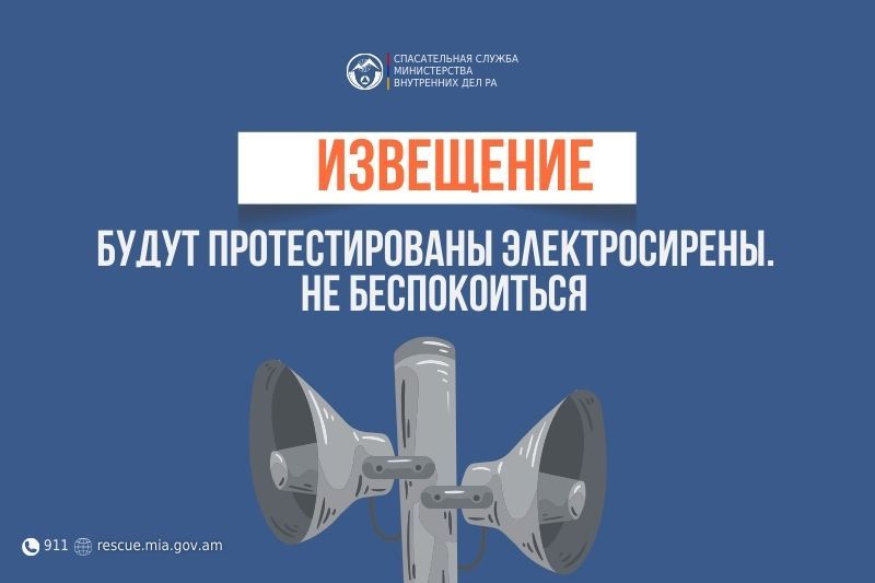 10-го февраля с 10:00 по 10:30 в населенном пункте Карби, с 11:00 по 11:30 в населенном пункте Уши Арагацотнского региона будут протестированы электросирены.