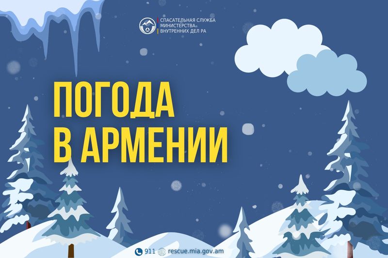 Днем 29-го, 30-го января ожидается погода без осадков. 31-го января, с 1-3 февраля в отдельных районах ожидается снег, в горных районах - метель, низкая горизонтальная видимость. С 30-31 января в низкогорных местах Ширакской равнины, предгорьях Арагацотна и Котайка, в Араратской долине ожидается туман.